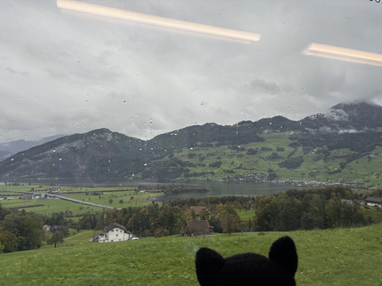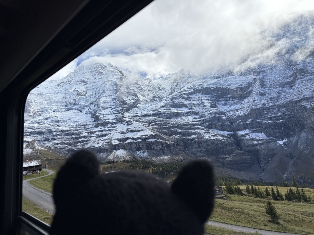 Huii, hier kann eins ja das #FensterAuf machen, so toll! Das Wetter wird immer besser! Aber etwas ist komisch mit dem Zug, ab und zu rattert der und es geht steil hoch und runter, Lukas sagt das sei ein Zahnrad, damit könne der Zug steiler hoch und runter fahren als normal! ⚙️
