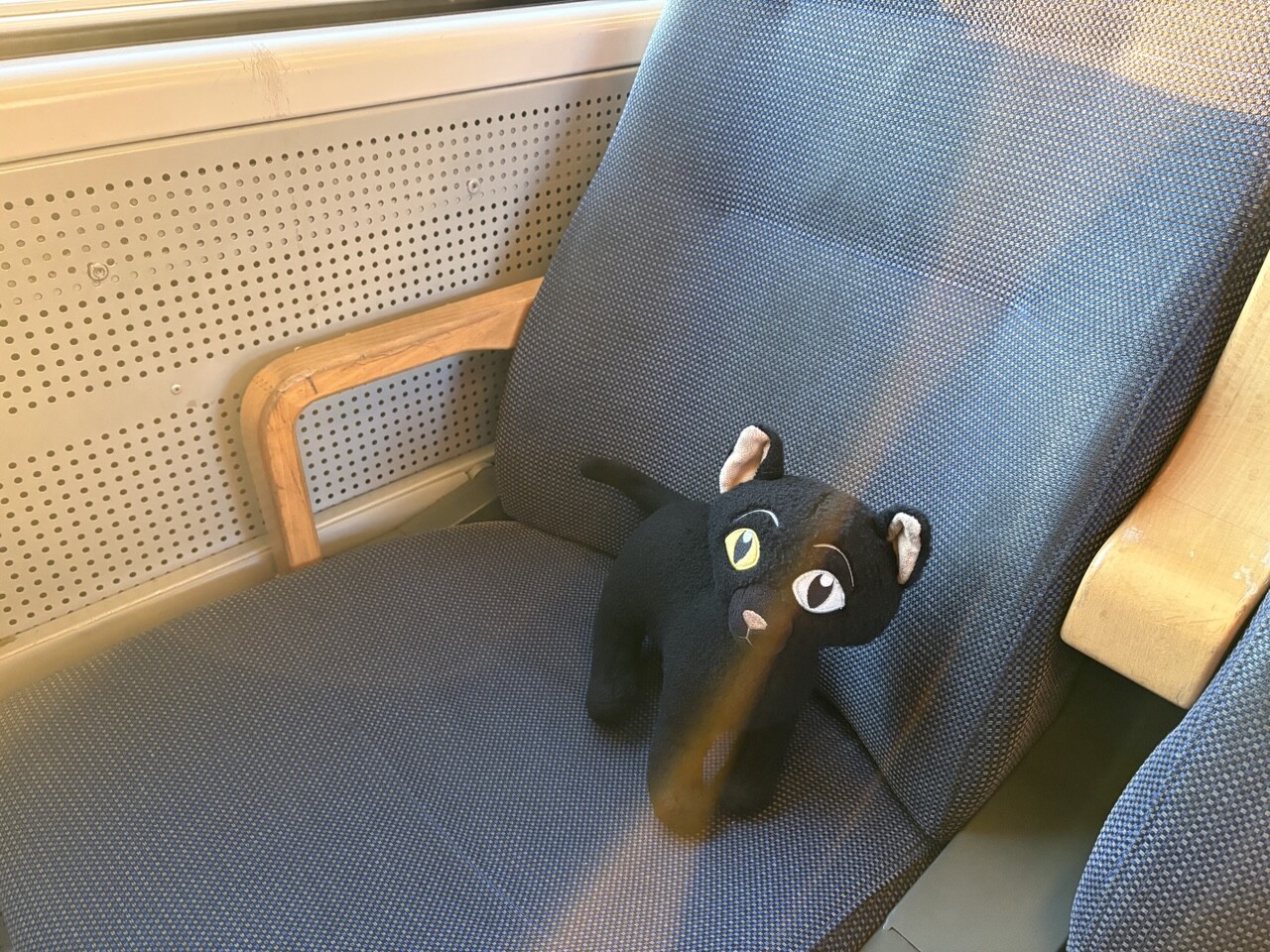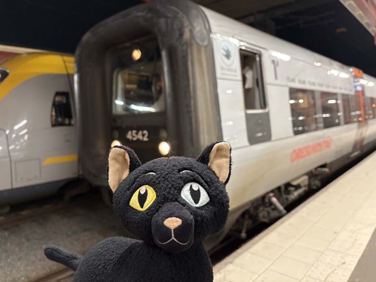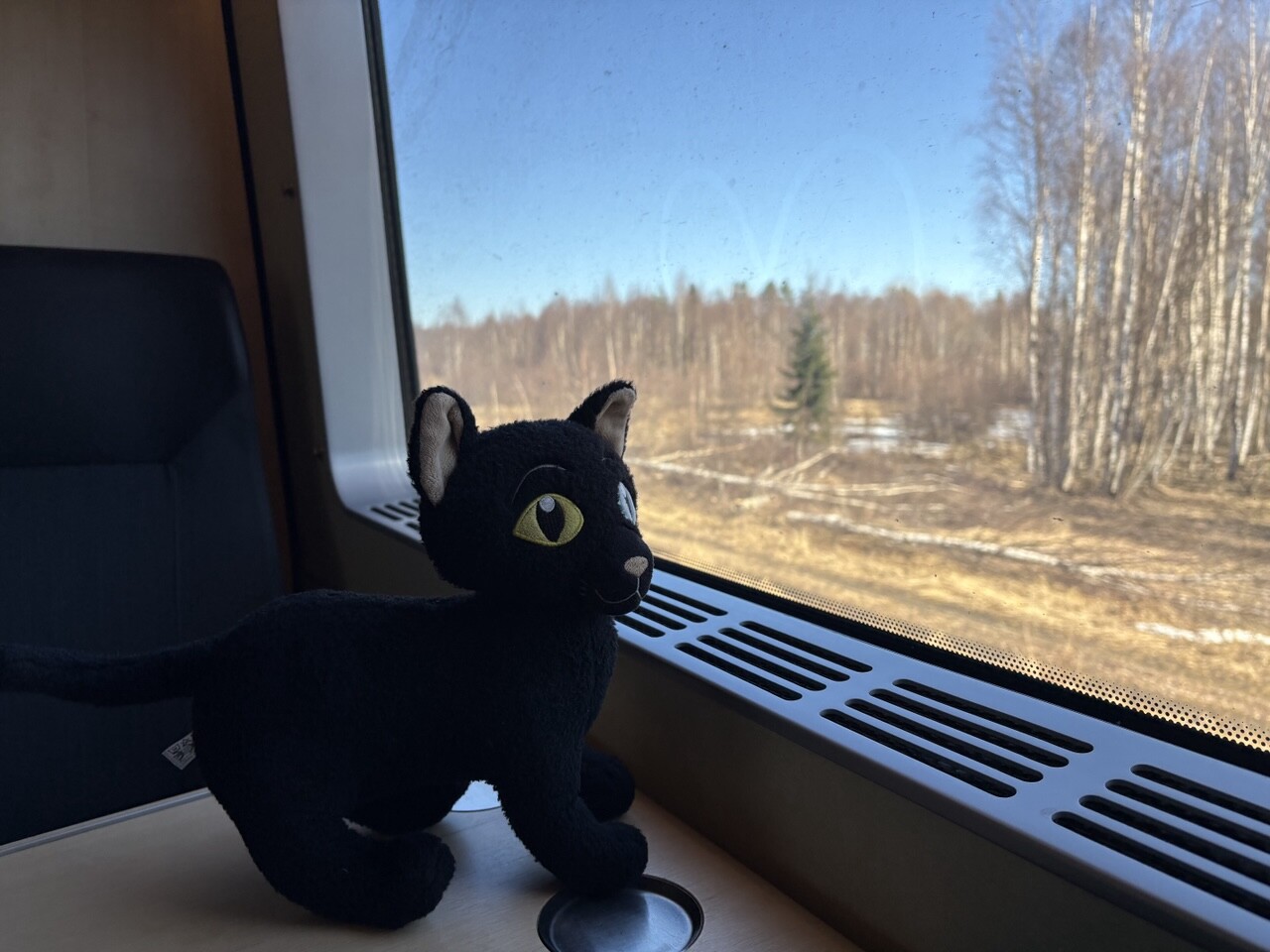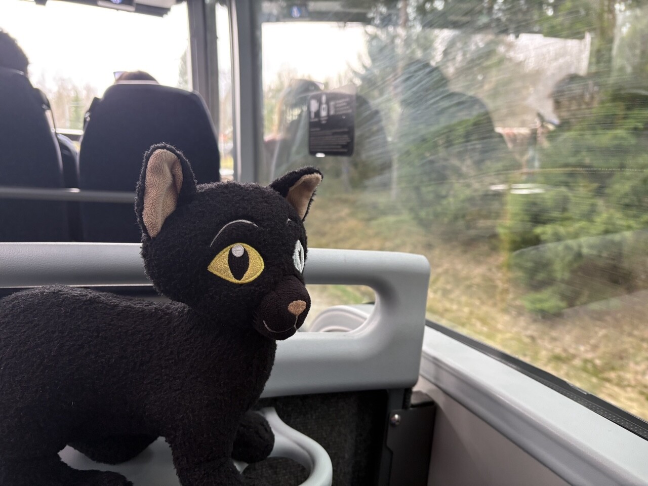Miau, nachdem es ordentlich Frühstück gab (sogar mit Fisch @pingu_paul), sind wir in diesen Zug gestiegen. Ganz toll, da gibts einen Plüschi Platz direkt am Fenster! 😻