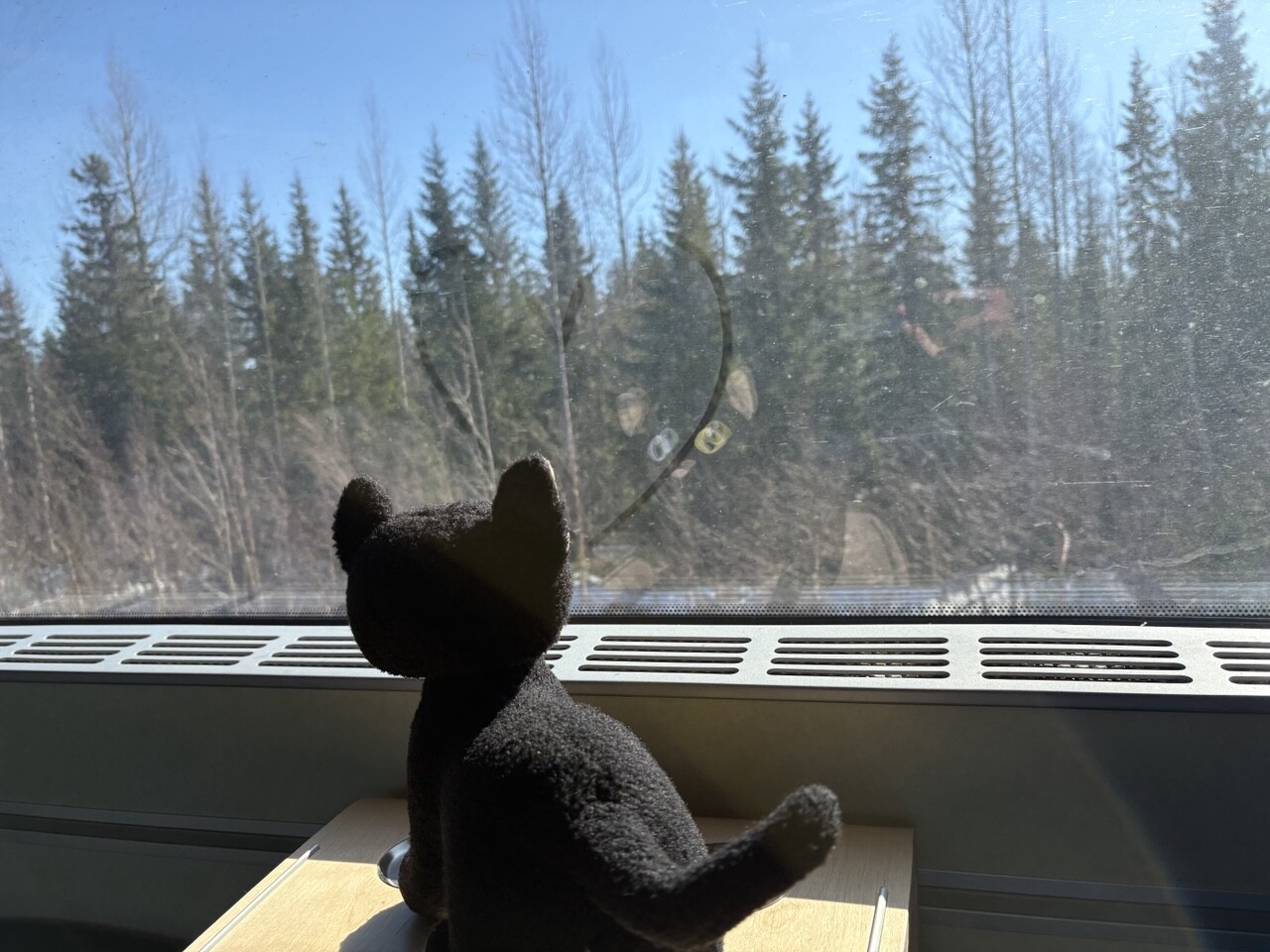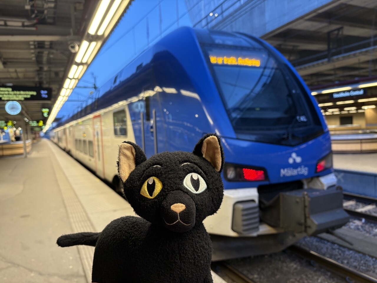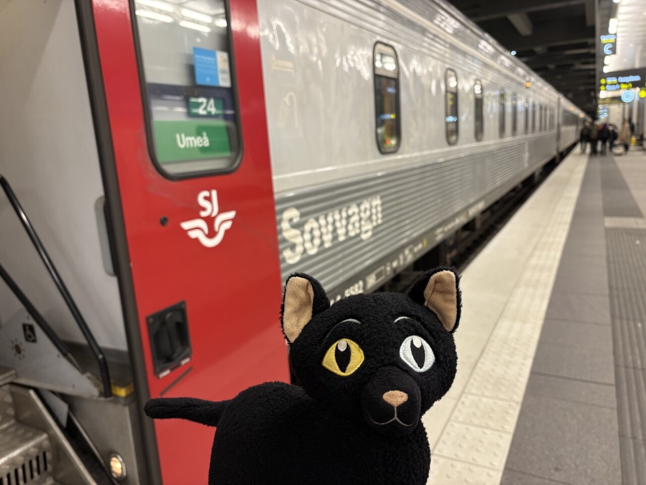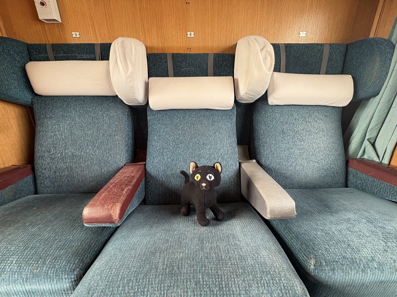 Miau, nachdem es ordentlich Frühstück gab (sogar mit Fisch @pingu_paul), sind wir in diesen Zug gestiegen. Ganz toll, da gibts einen Plüschi Platz direkt am Fenster! 😻