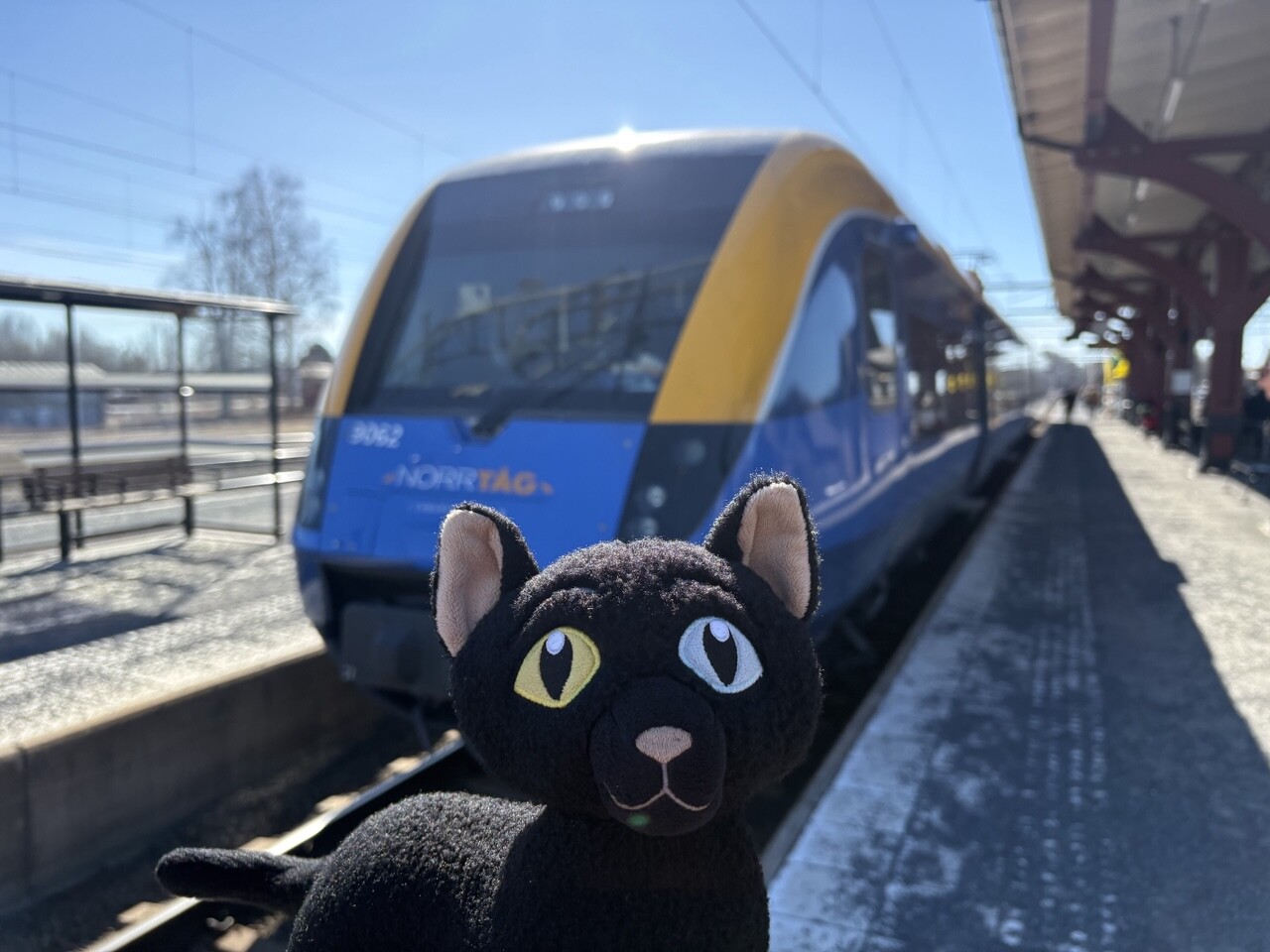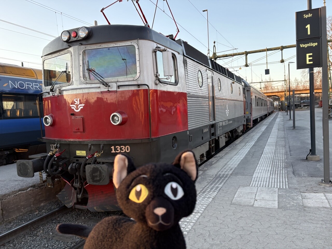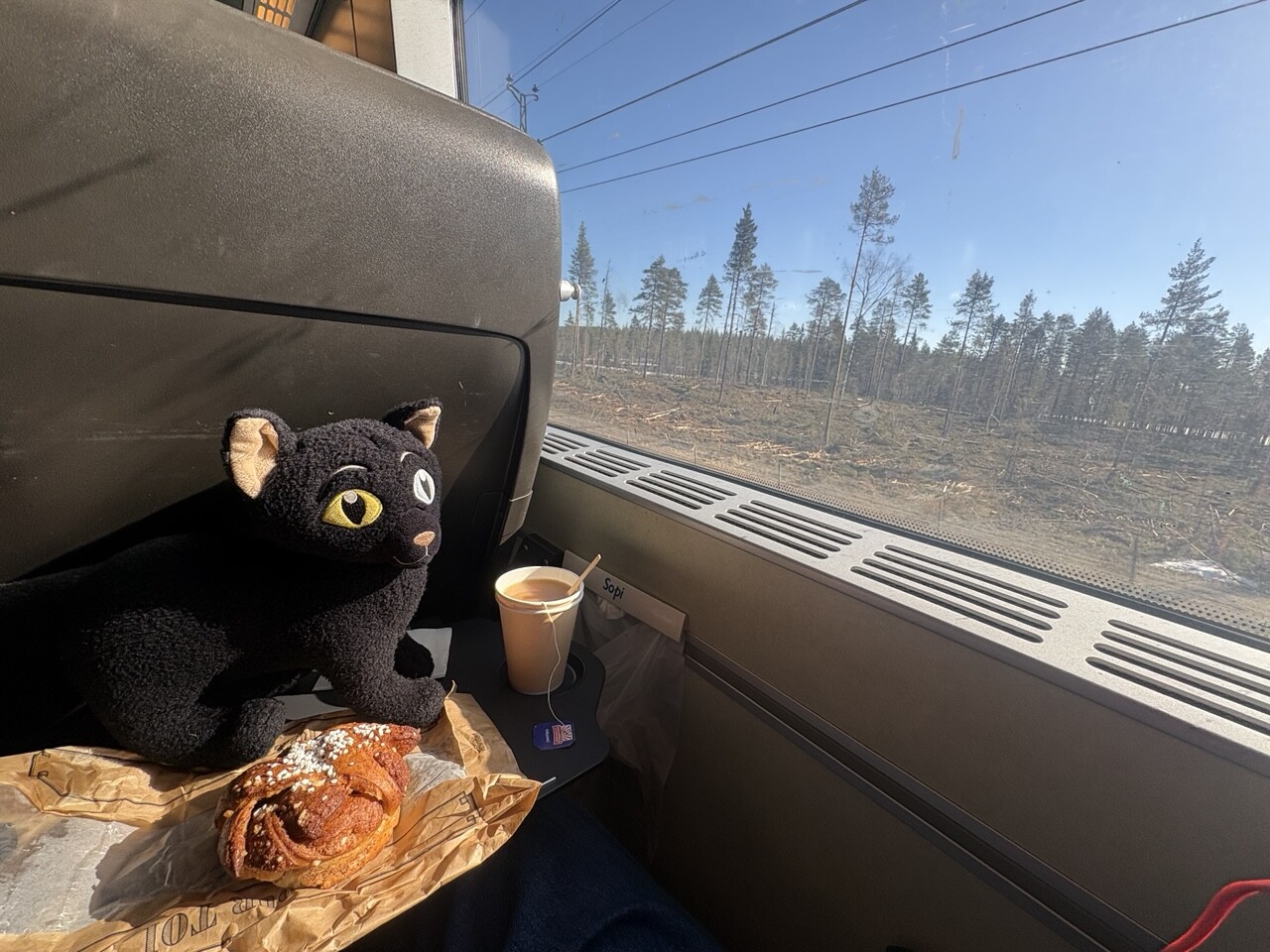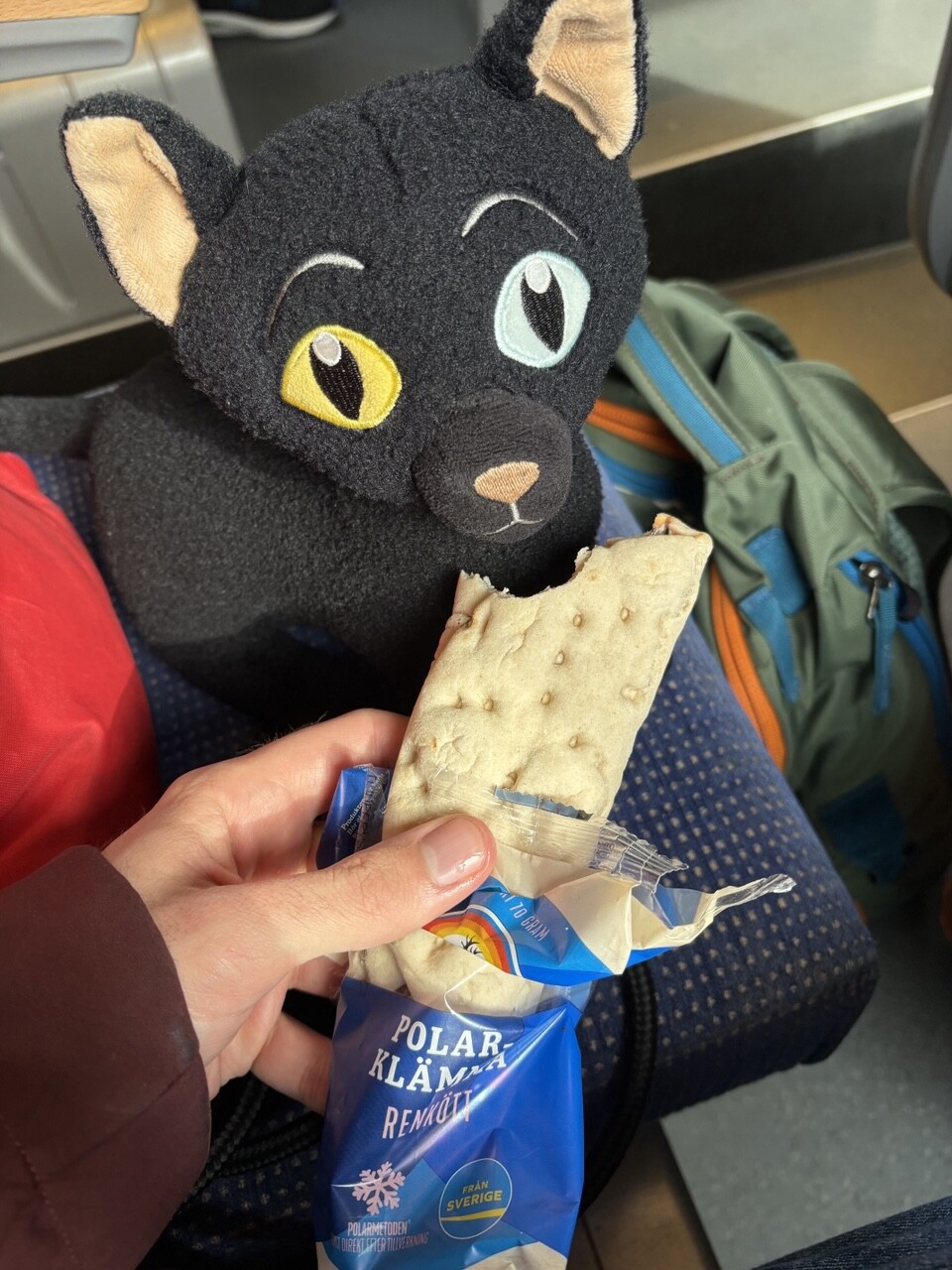 Miau, nachdem es ordentlich Frühstück gab (sogar mit Fisch @pingu_paul), sind wir in diesen Zug gestiegen. Ganz toll, da gibts einen Plüschi Platz direkt am Fenster! 😻