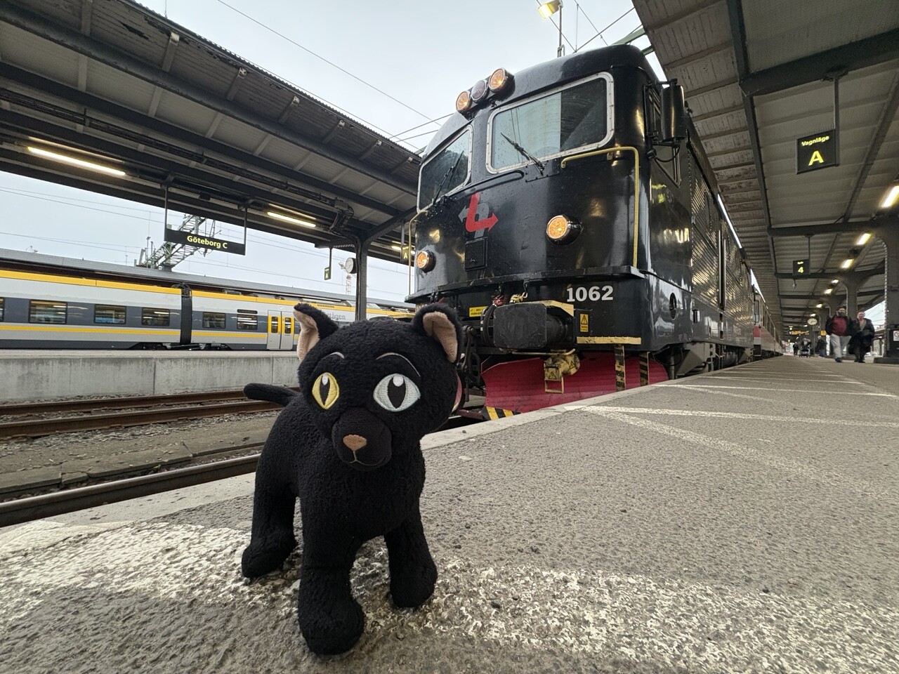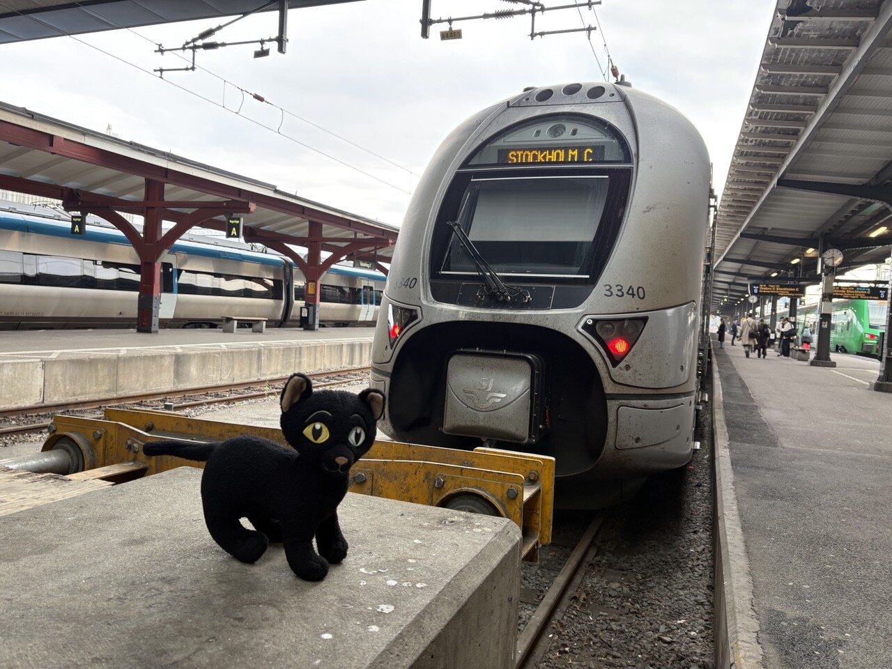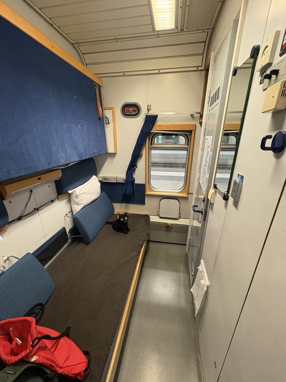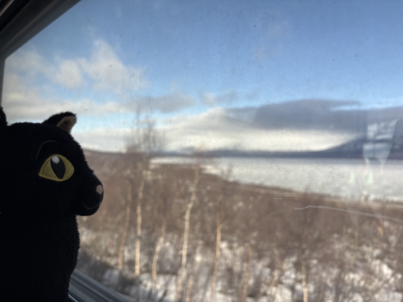 Miau, nachdem es ordentlich Frühstück gab (sogar mit Fisch @pingu_paul), sind wir in diesen Zug gestiegen. Ganz toll, da gibts einen Plüschi Platz direkt am Fenster! 😻