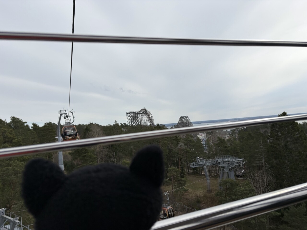 Es gibt auch ne Seilbahn von wo aus man Tiere oder die Achterbahn beobachten kann. Ja da gibts ne gaaanz grosse Holzachterbahn, die ist Lukas ganz oft gefahren!