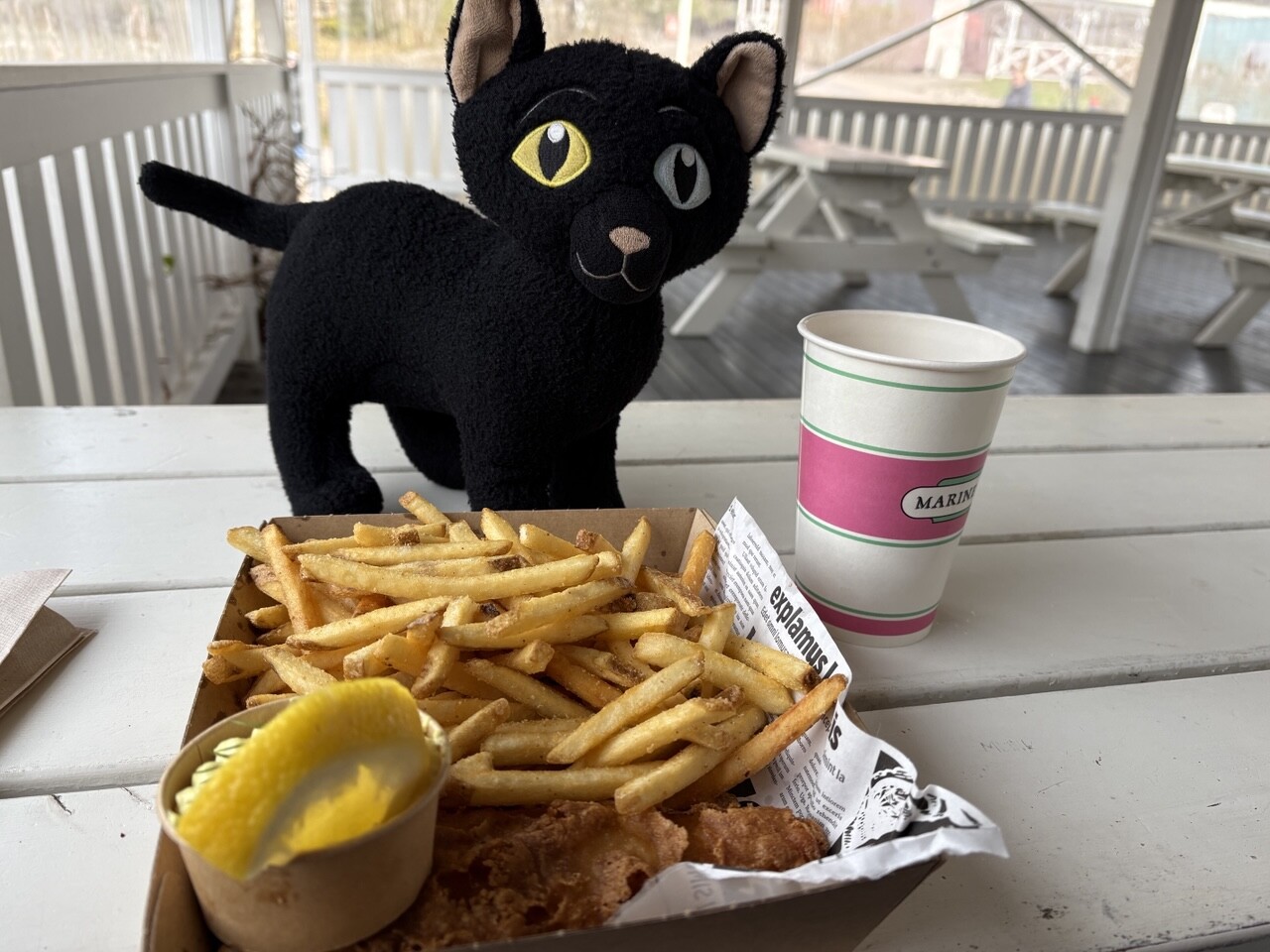 Heute ist Lukas mit einem Gummiboot herumgefahren, ich blieb lieber an Land und bin mal diesem Fischduft nach, bis Lukas wieder kam. 😼