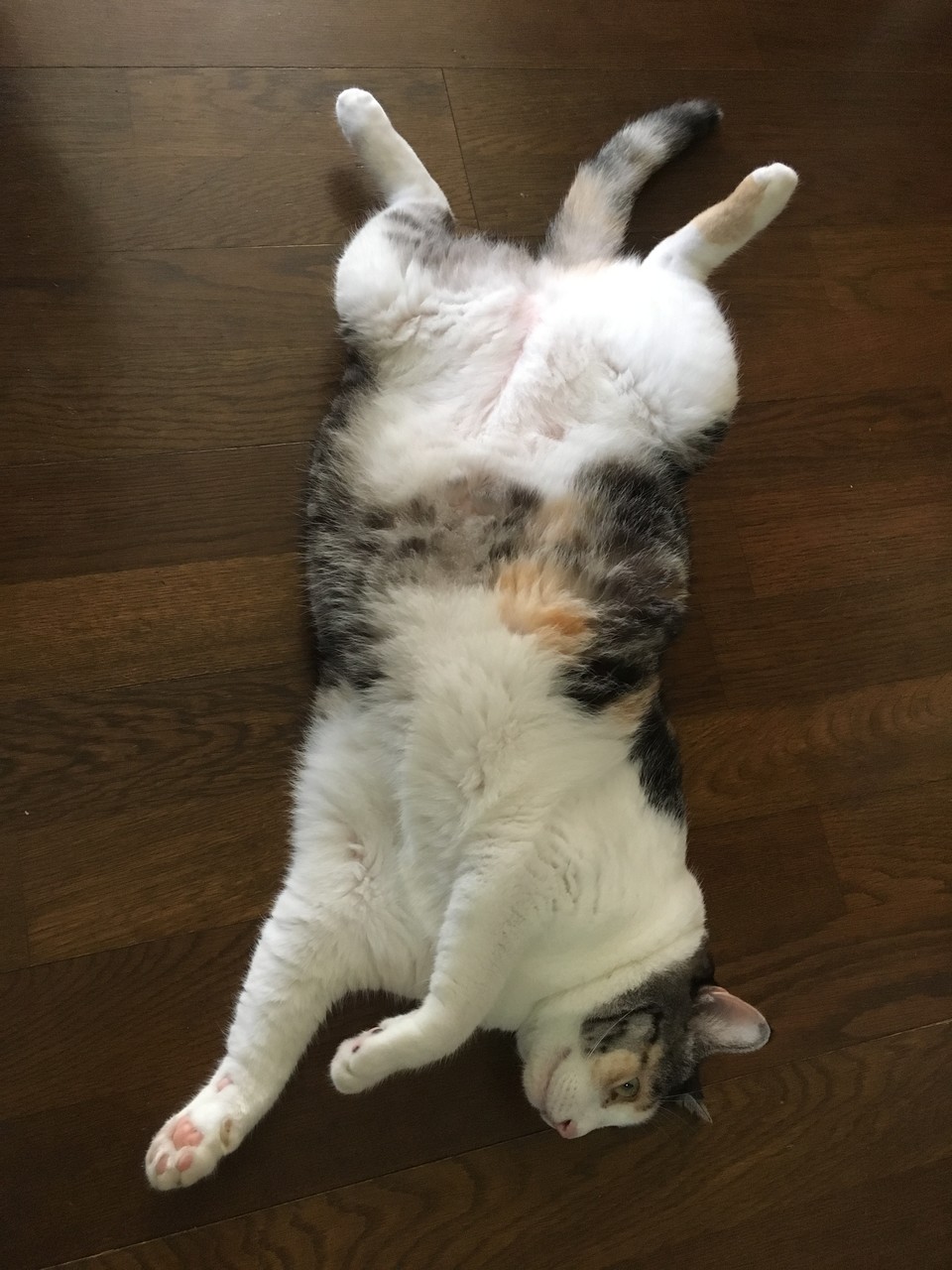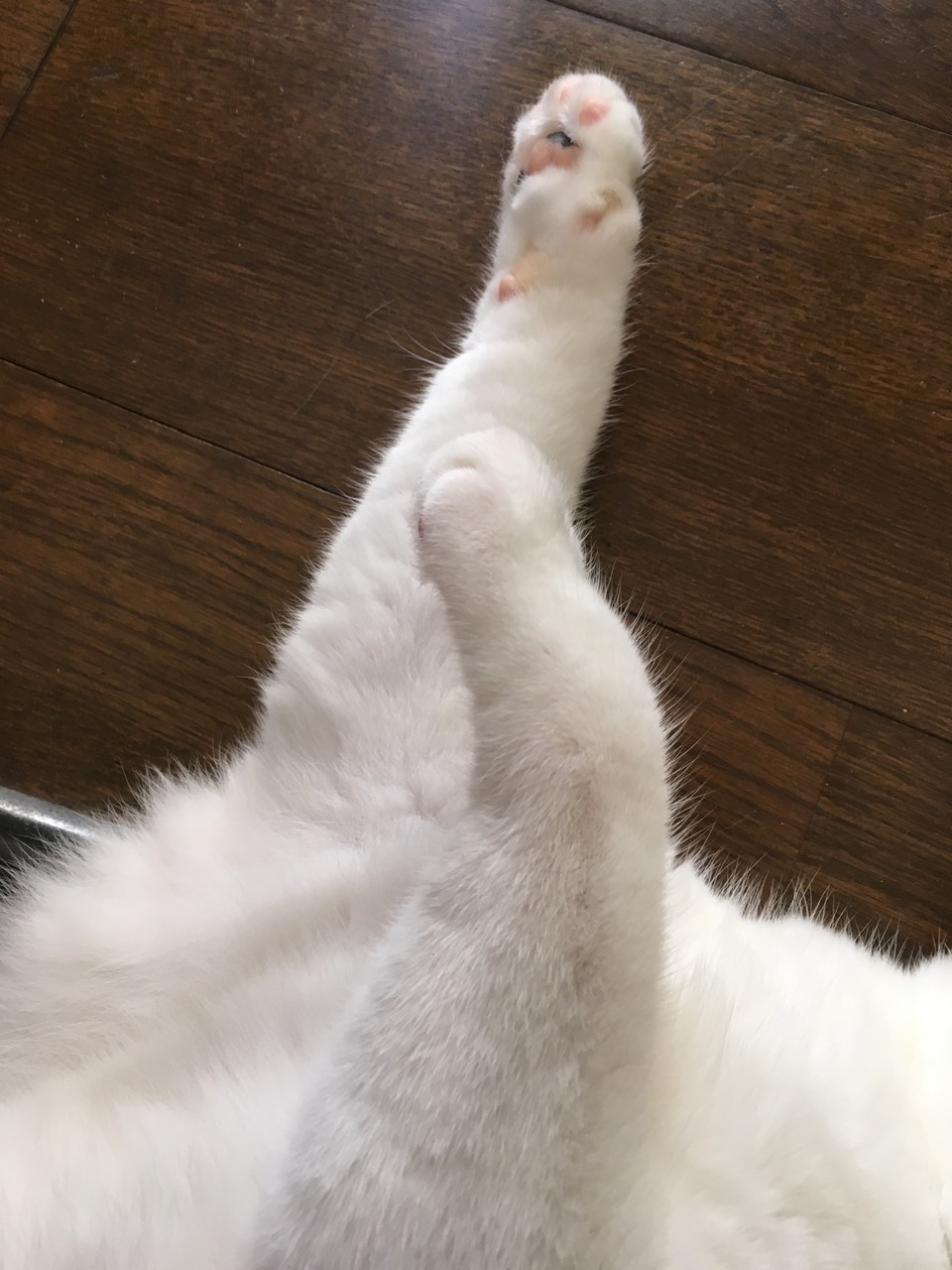 ここだけだと白猫なんだなぁ。初めて長女の肉球のブチ見た時、血豆だと思った(ฅ'ω'ฅ)