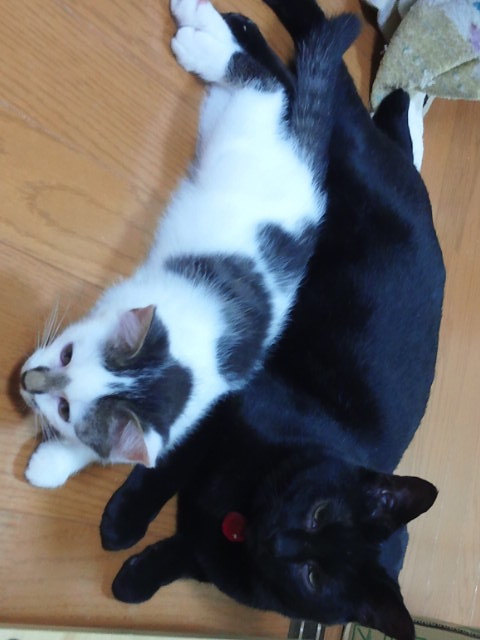 お兄ちゃん(クロ)大好きなジヴァですが、いつまでも仔猫のつもりでのしかかって よくお兄ちゃんにマジ切れされてます。