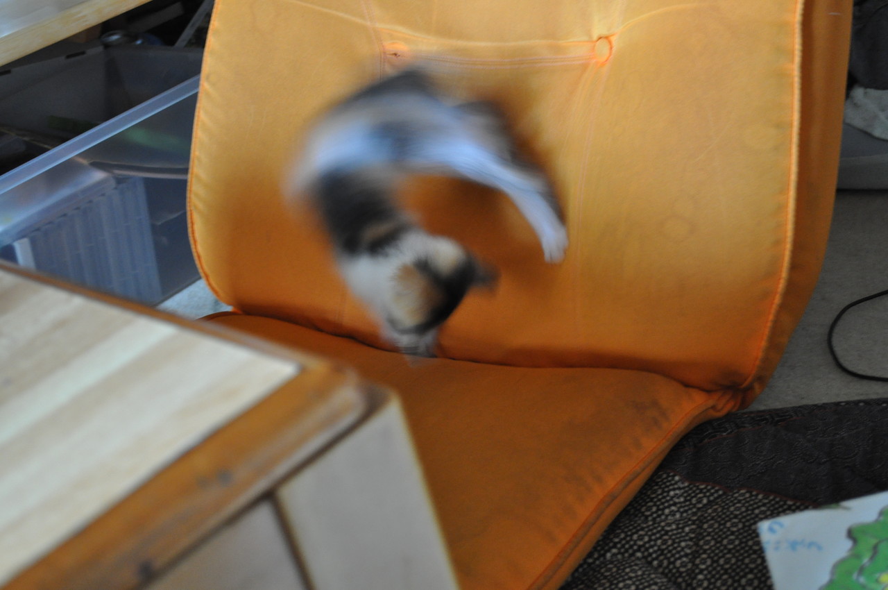 他の子が食べてるといつも背後からガン見。で、食べ残しを狙うので、食べ終わったらトットと片付けないといかない…という油断ならないタイプです
