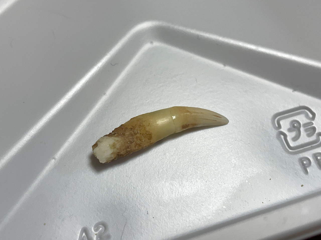 末っ子(元)の牙が抜けました🦣右の犬歯で挺出(ていしゅつ)が起こっていて、数年かけて伸びてグラグラしてきていたのですが、先程ついにポロリしました😳末っ子(元)は挺出中も抜けた時も、全く気にする様子もなく。使い古しの歯ブラシと、歯磨き粉で磨いたので、あとは乾かして宝物ボックスにしまいます。4枚目は抜ける前の末っ子(元)。