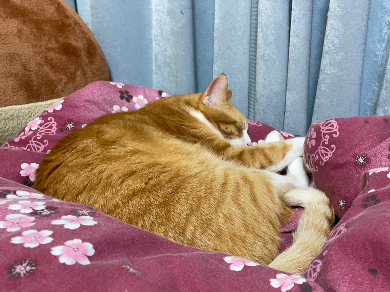 丸くなって寝ていたのでお兄ちゃんにフリースかけてほかほかにしたら、欠伸してまたスヤァ💤