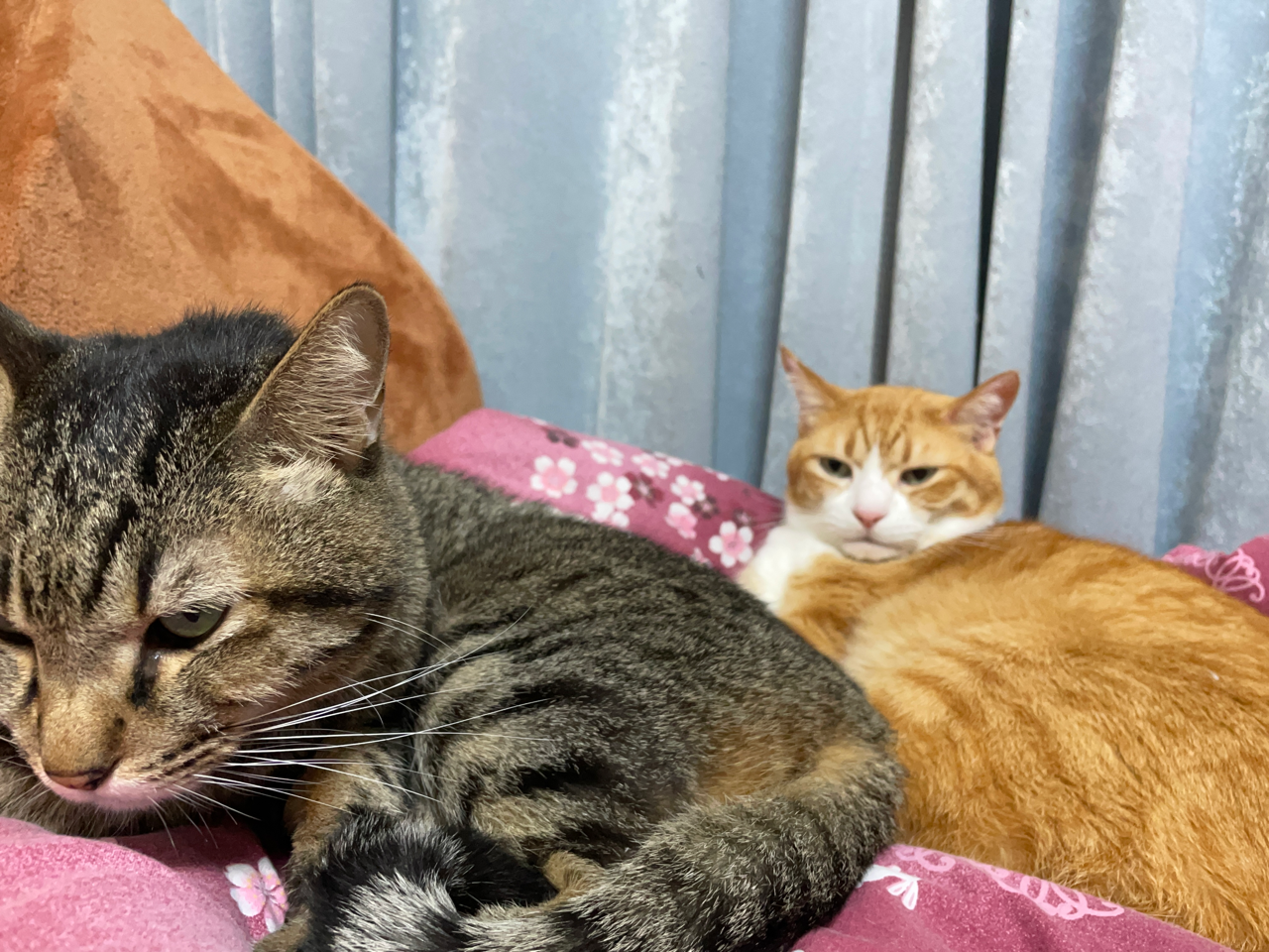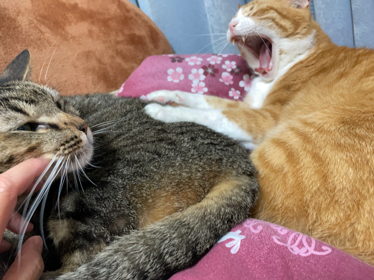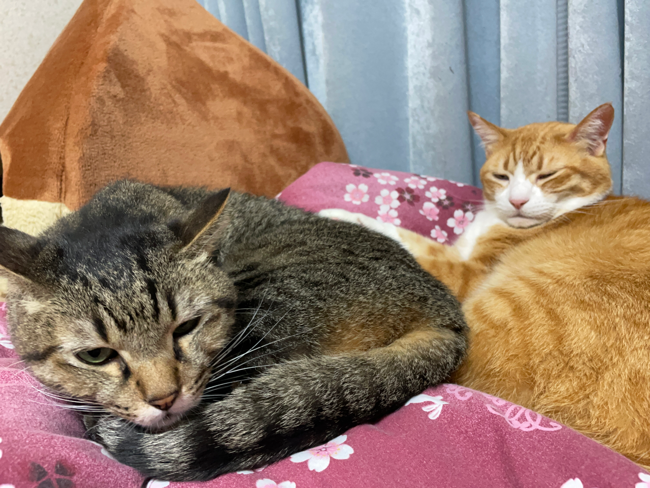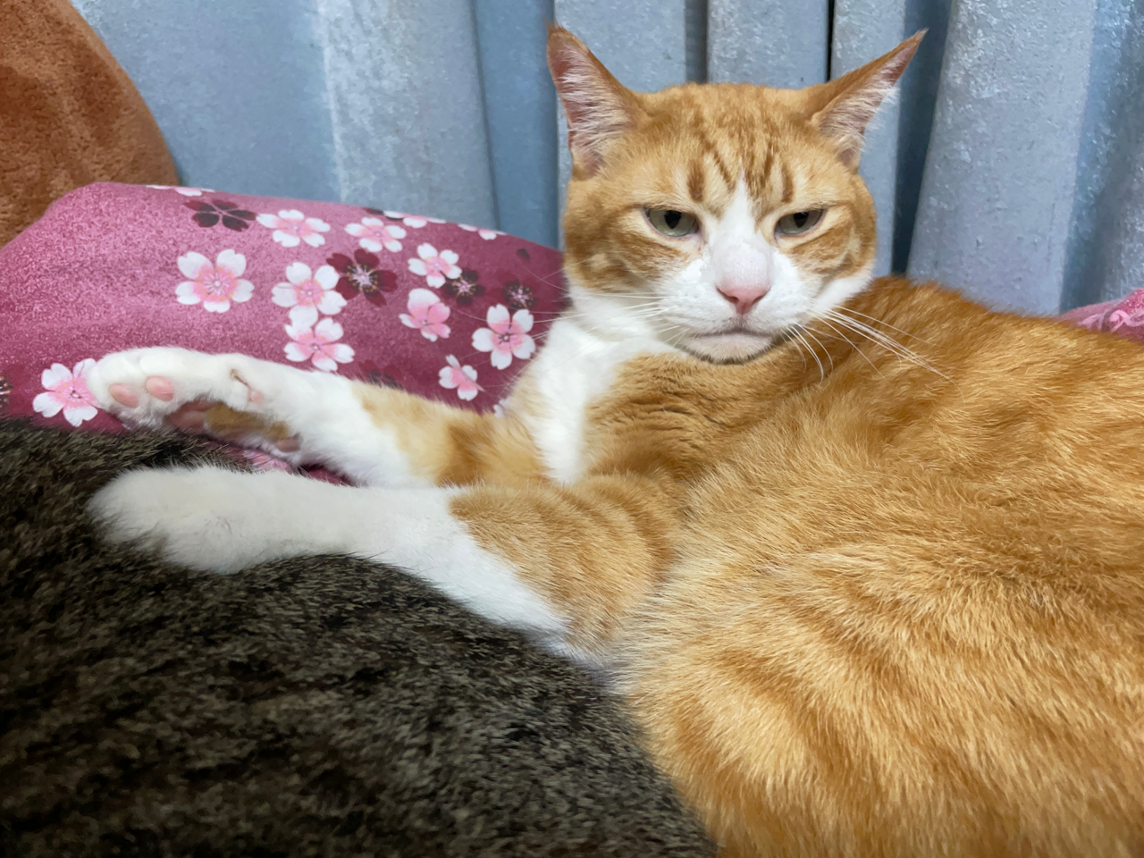 他の猫とくっ付きたいのに、くっ付き方がちょっとウザいため怒られてしまう末っ子(元)🙀お兄ちゃんが眠たいタイミングでどうにかくっ付くことに成功。よかったね。
