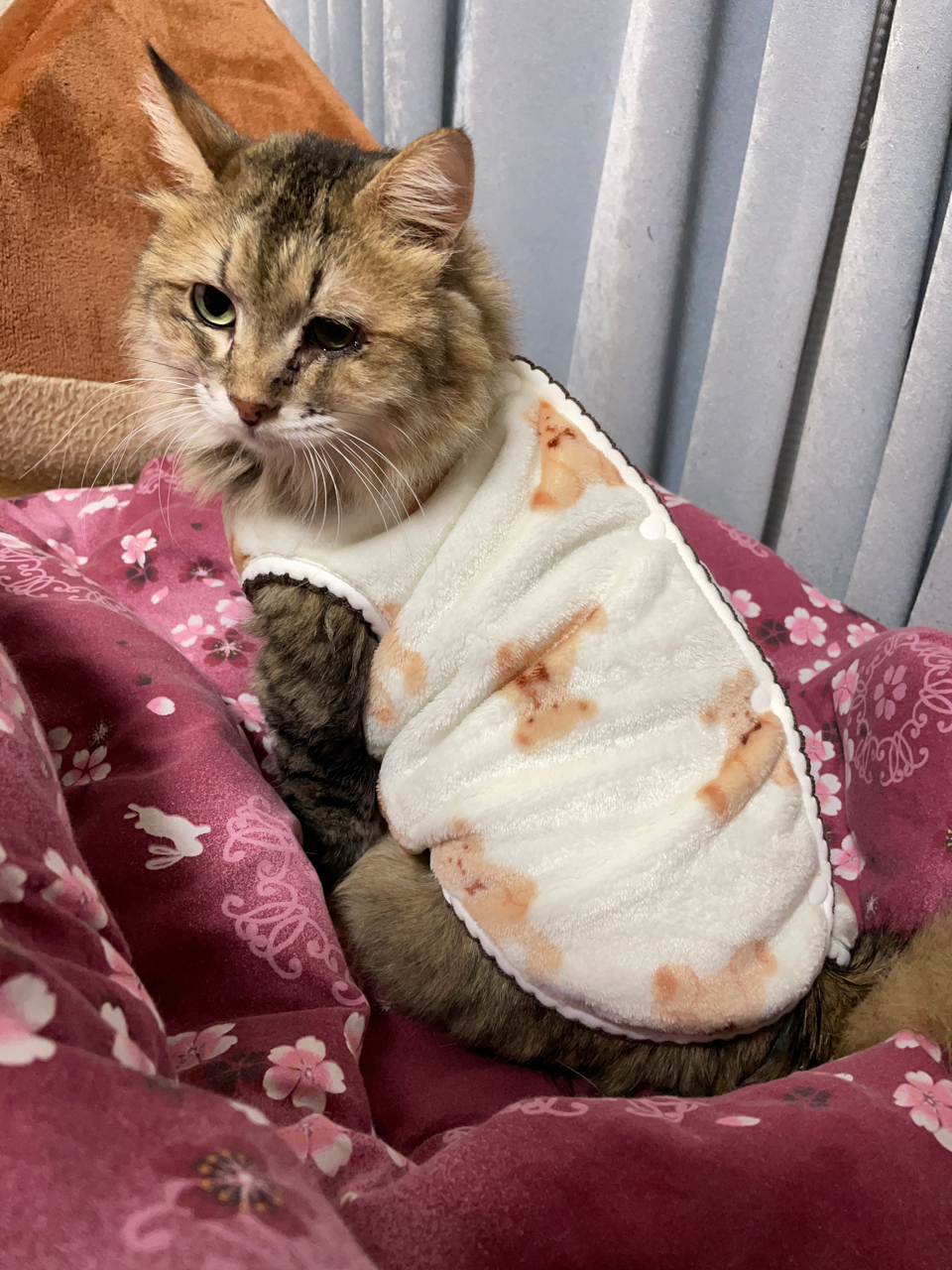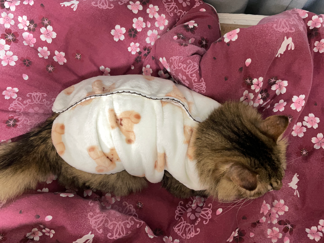 去年の今頃は嘔吐と下痢と食欲不振で体重が激減してしまっていたお姉ちゃん😿動物病院のベテラン院長先生の地道な治療のおかげでどうにか持ち直し、今は食欲安定して体重も増えて元気いっぱい。今日Mサイズだった冬の寝巻きはサイズアウトでLを買い直し。今日も暖かくして寝ようね🐱💤